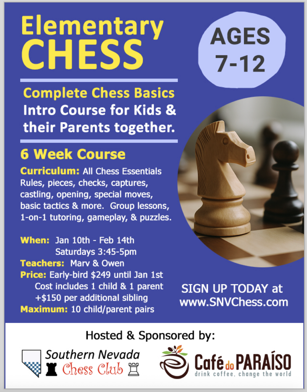 See the flyer for Elementary Chess course starting January 10